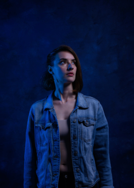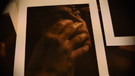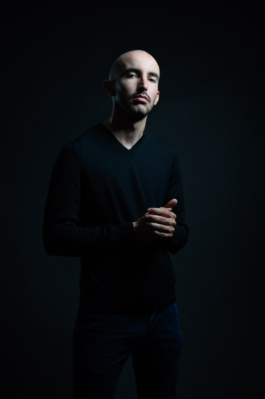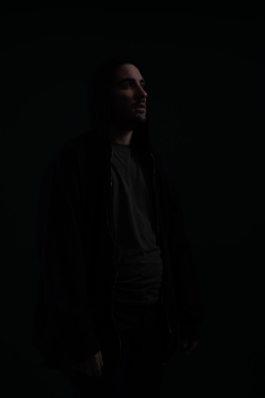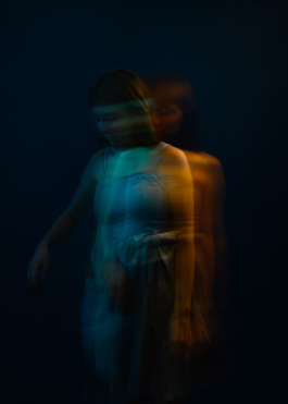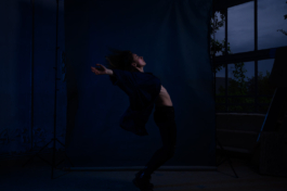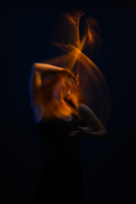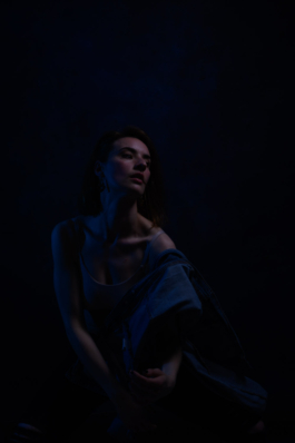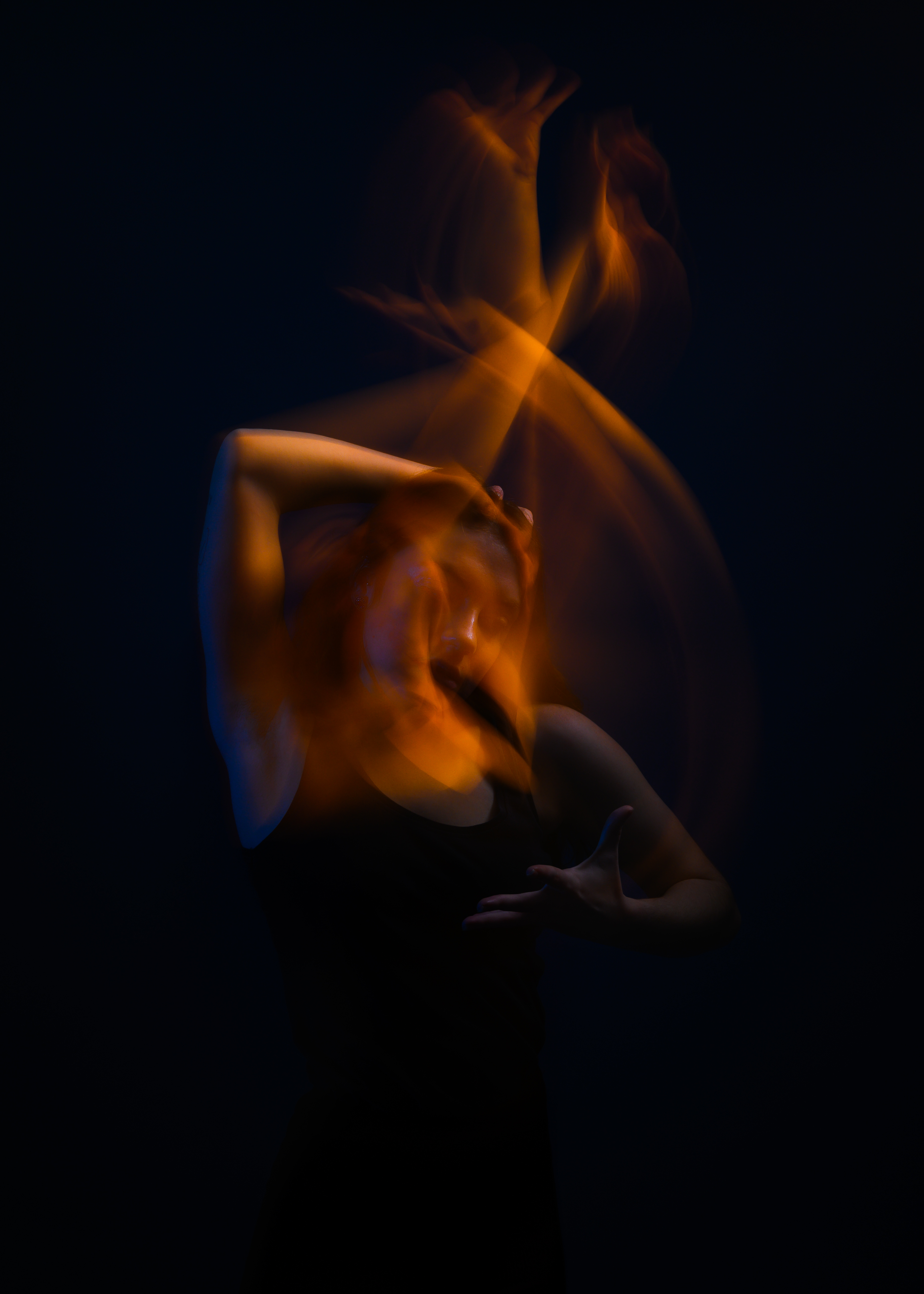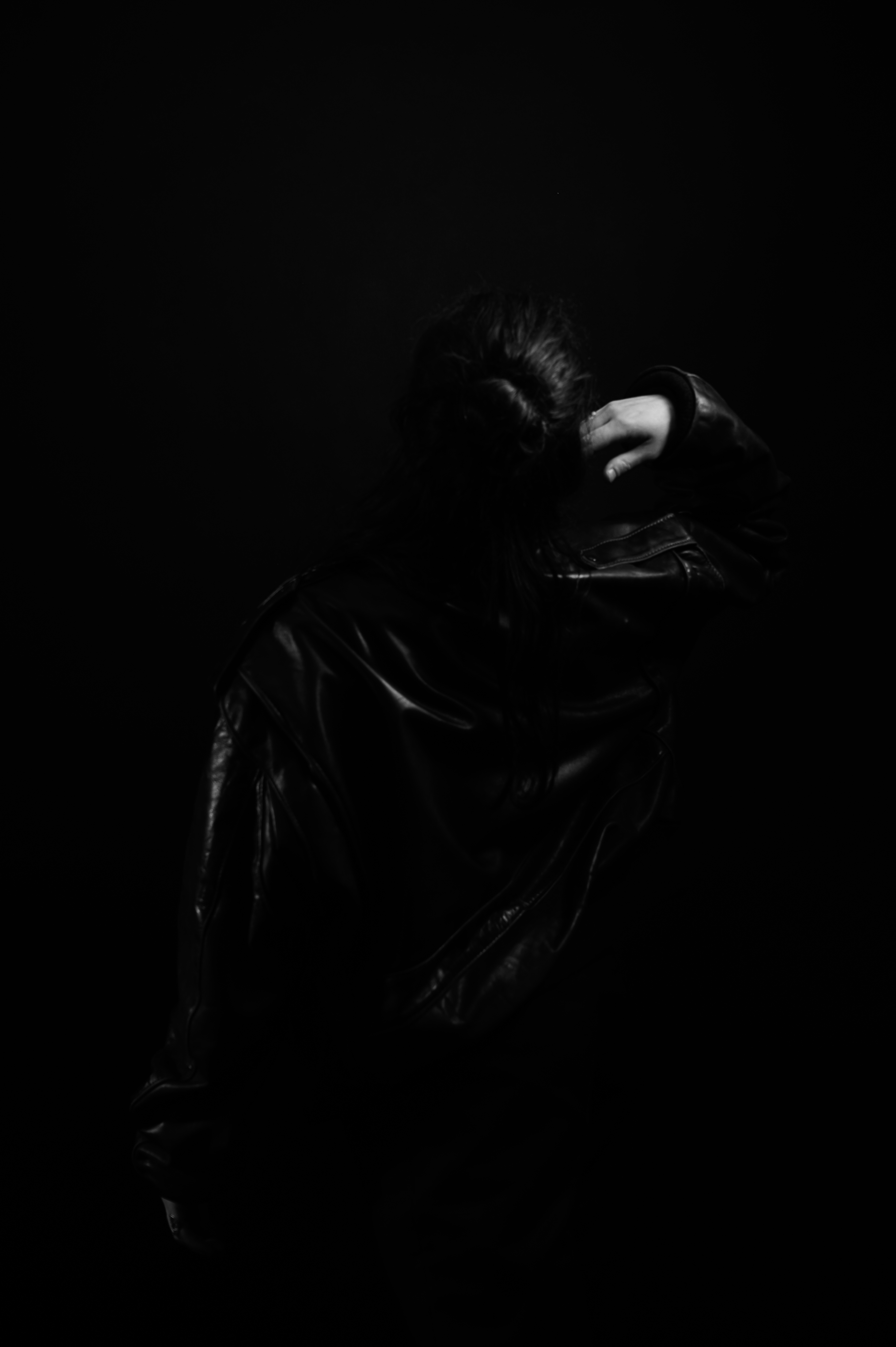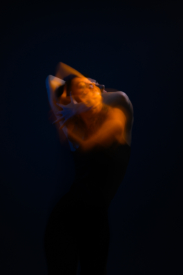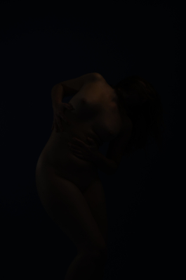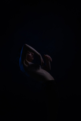 Une présence se dessine dans le noir, encore hésitante, en pleine transformation / séries de portraits studios.