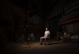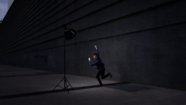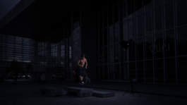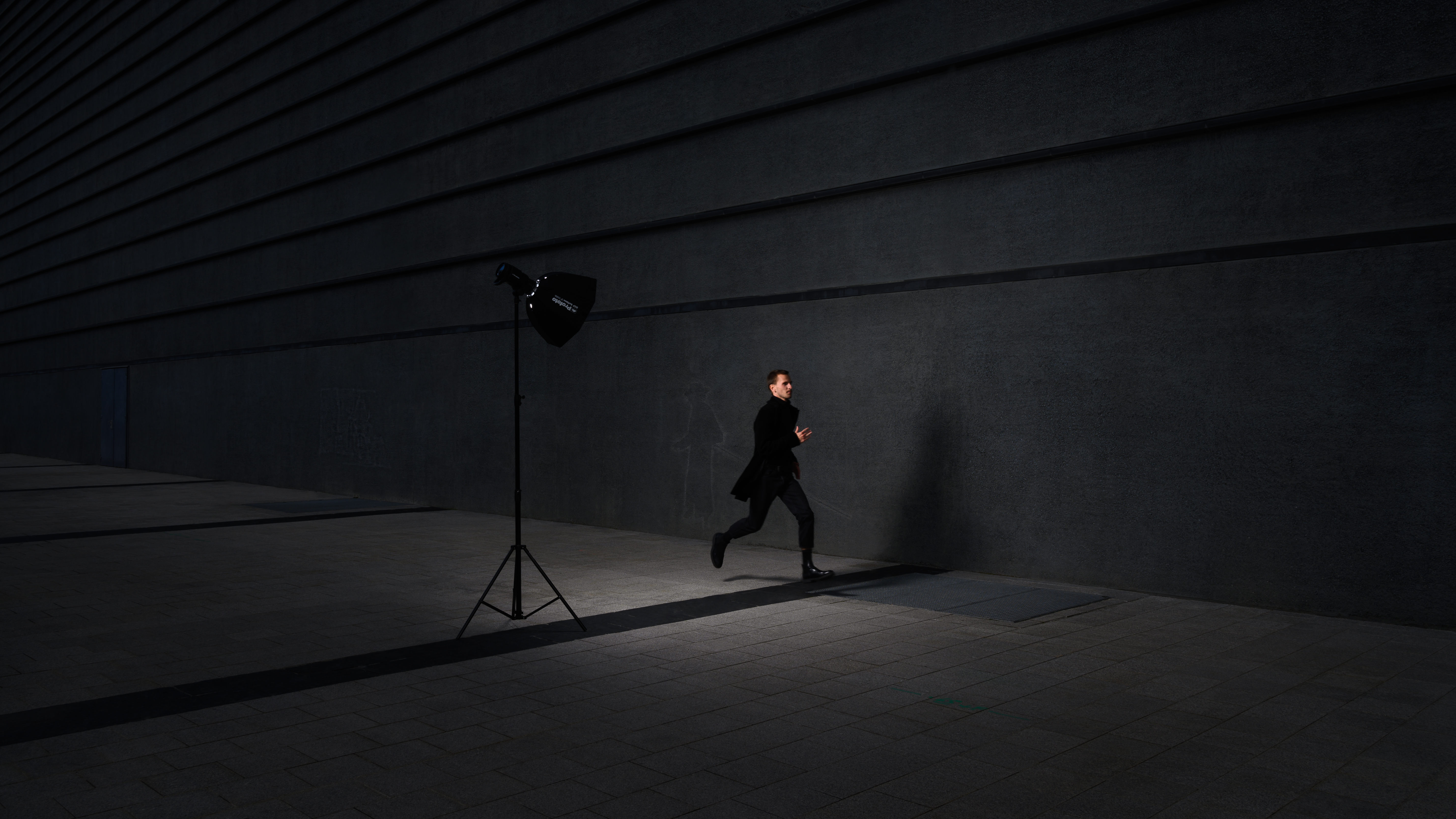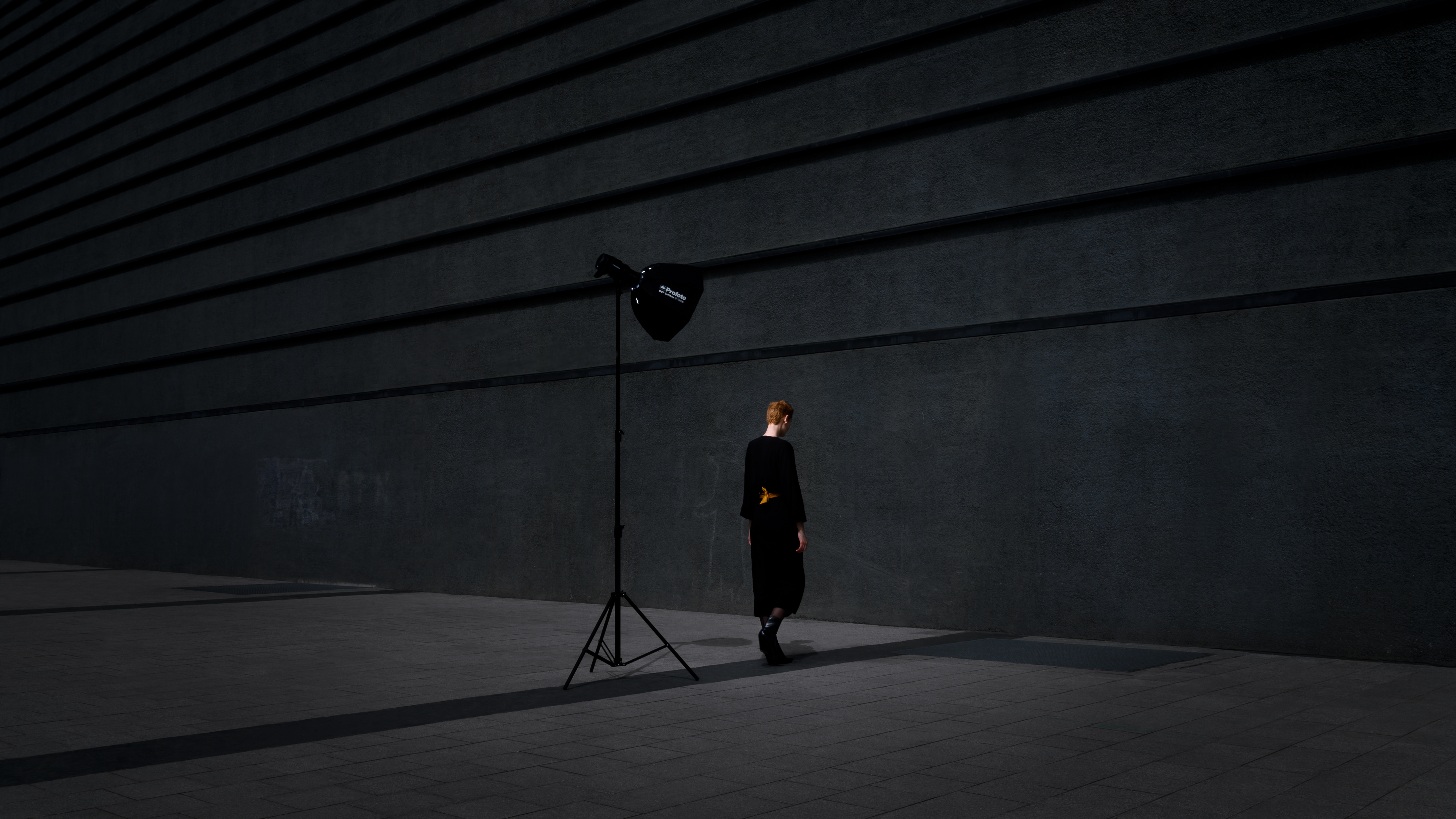 Le bâtiment est traité comme un immense studio, nettoyé en post-production, pour se concentrer sur la simplicité de la scène : une personne, une lumière.